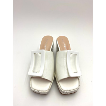 Dessus : cuir vegan Doublure : synthétique Semelle intérieure : cuir Semelle extérieure : gomme Hauteur du talon : 5 cm avec une plateforme de 3 cm à l'avant du pied Couleur : noir se ferme par un zip sur le dessus du pied Chausse normal