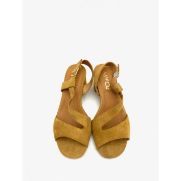 Dessus : cuir velours Doublure : cuir Semelle intérieure : cuir Semelle extérieure : crêpe Hauteur du talon : 7 cm avec une plateforme de 2 cm à l'avant du pied Couleur : camel se ferme par un zip intérieur et extérieur Chausse normal