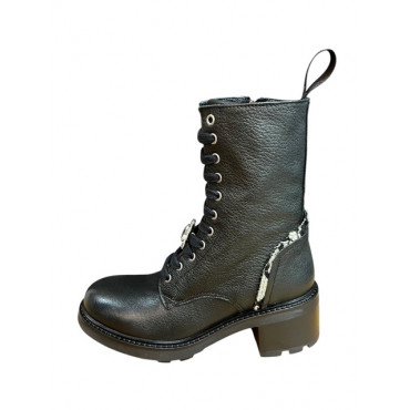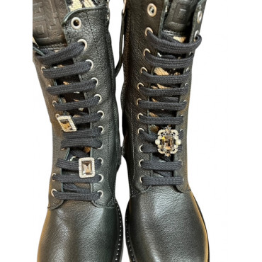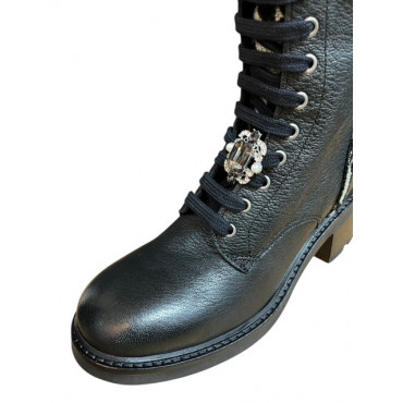 GIO+ BOTTINE AFRA60B EN CUIR NOIR A TALON AVEC DES BIJOUX AMOVIBLES