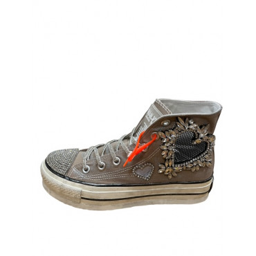 NANKU BASKET NA05V3 COMPENSSEE EN TOILE TAUPE AVEC DES BIJOUX