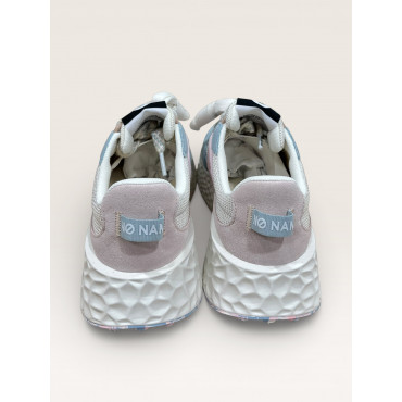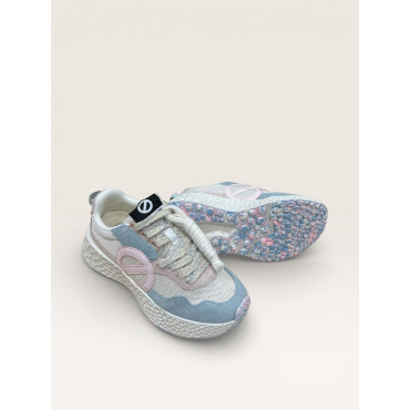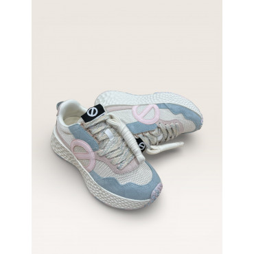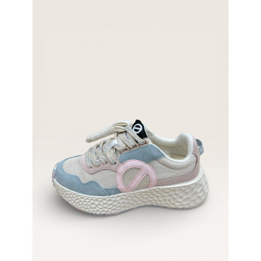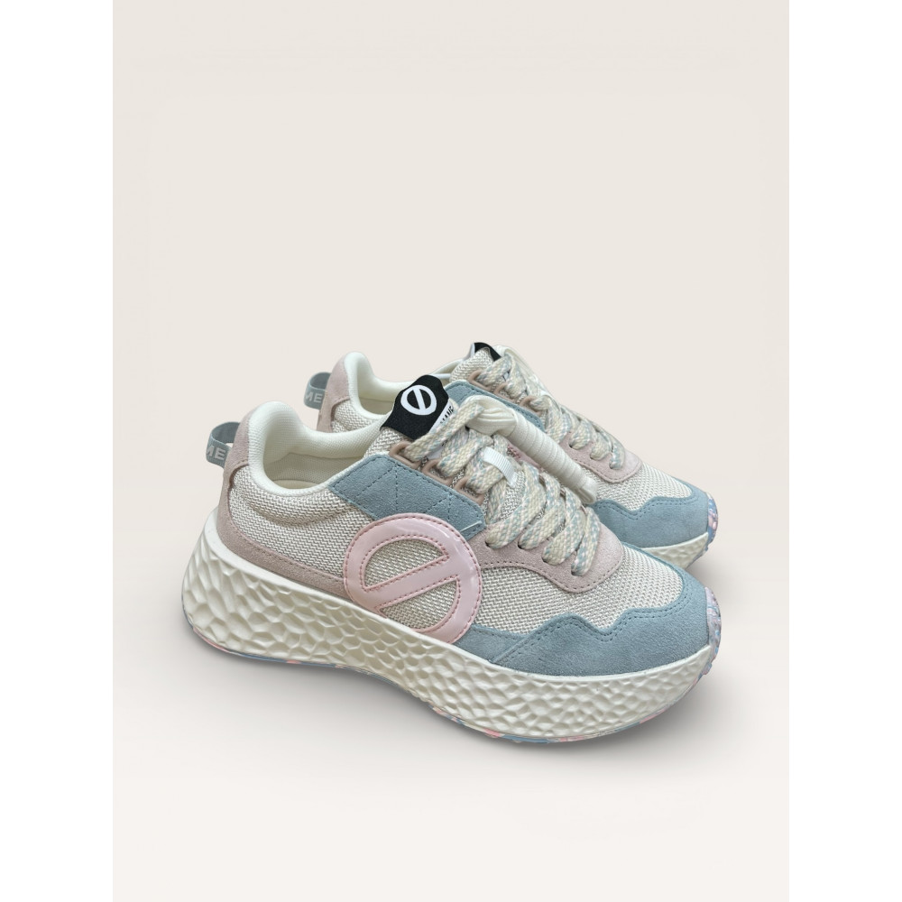 NO NAME BASKET COMPENSEE CARTER JOGGER EN CUIR VELOURS BLEU CIEL ET ROSE A LACETS