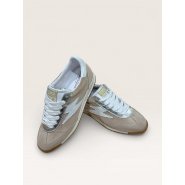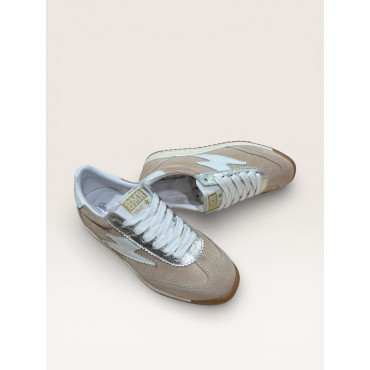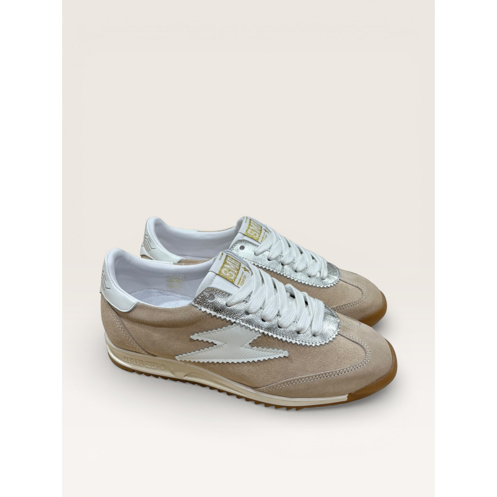 SMR 23 BASKET COMPENSEE JOYCE D204 EN CUIR VELOURS BEIGE A LACETS BLANC