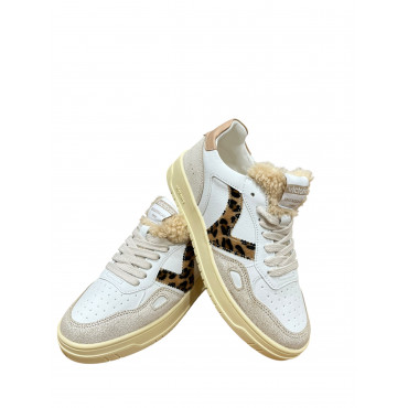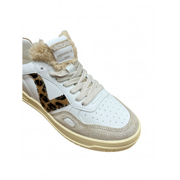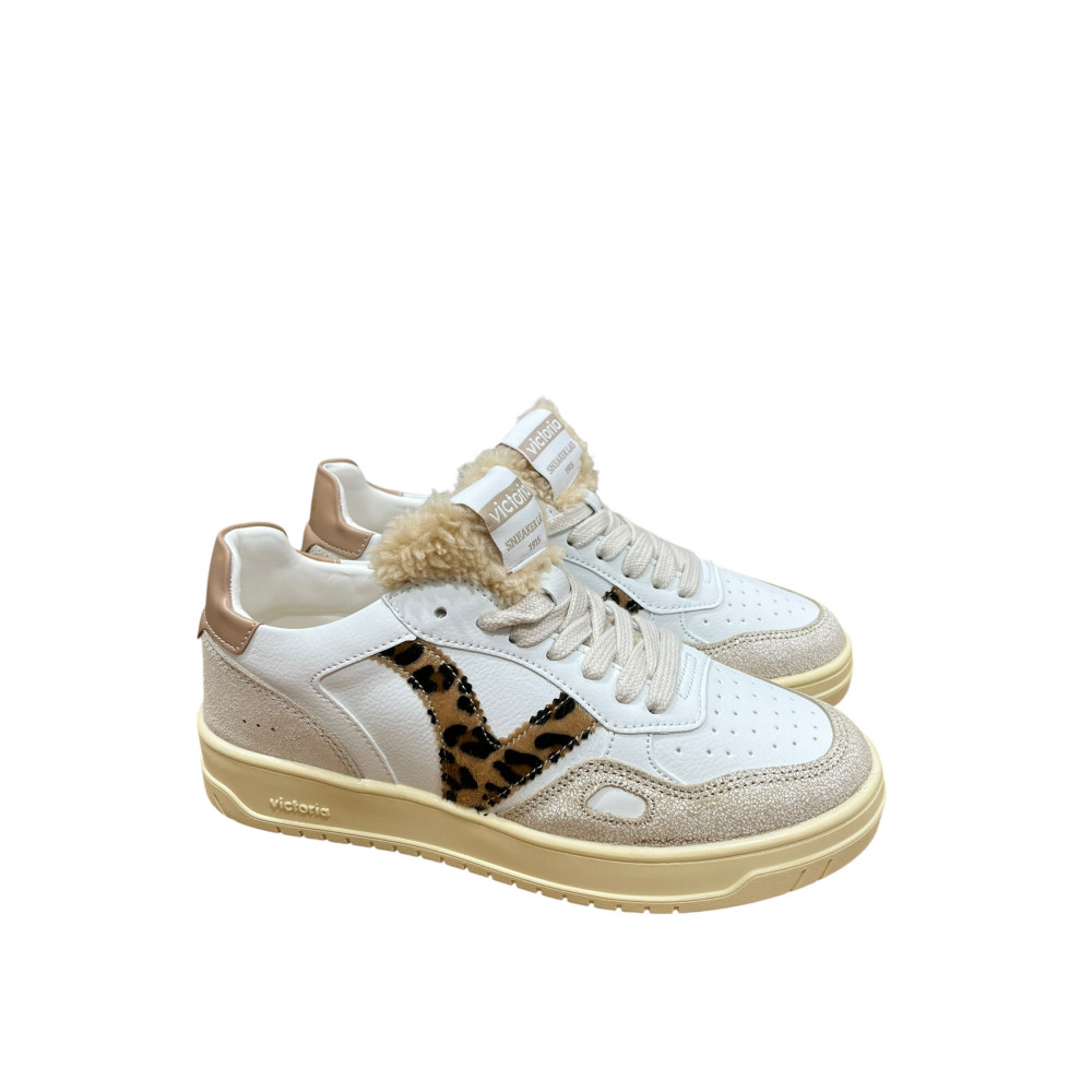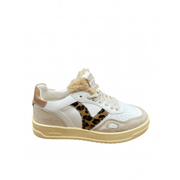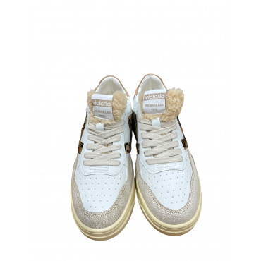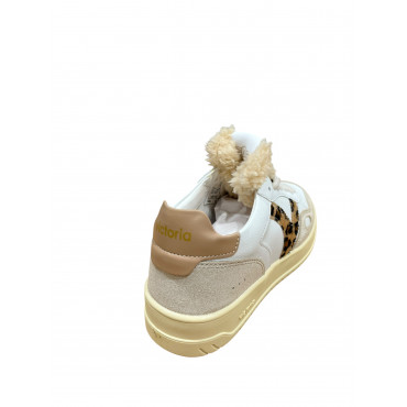 VICTORIA BASKET 257124 EN CUIR CAMEL ET BLANC AVEC UNE LANGUETTE EN LAINE SYNTHETIQUE