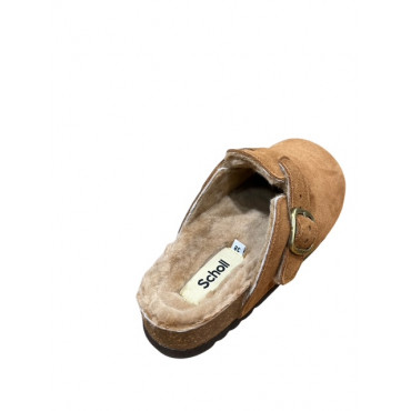 SCHOLL MULE FAE FOURREE STYLE "SABOT " EN CUIR SUEDE CAMEL