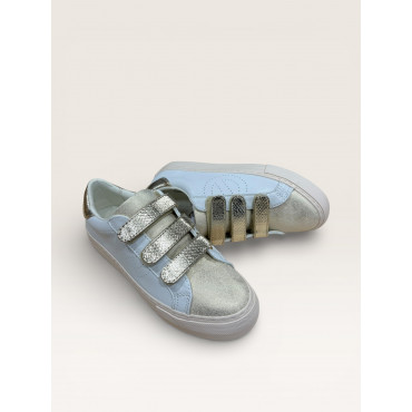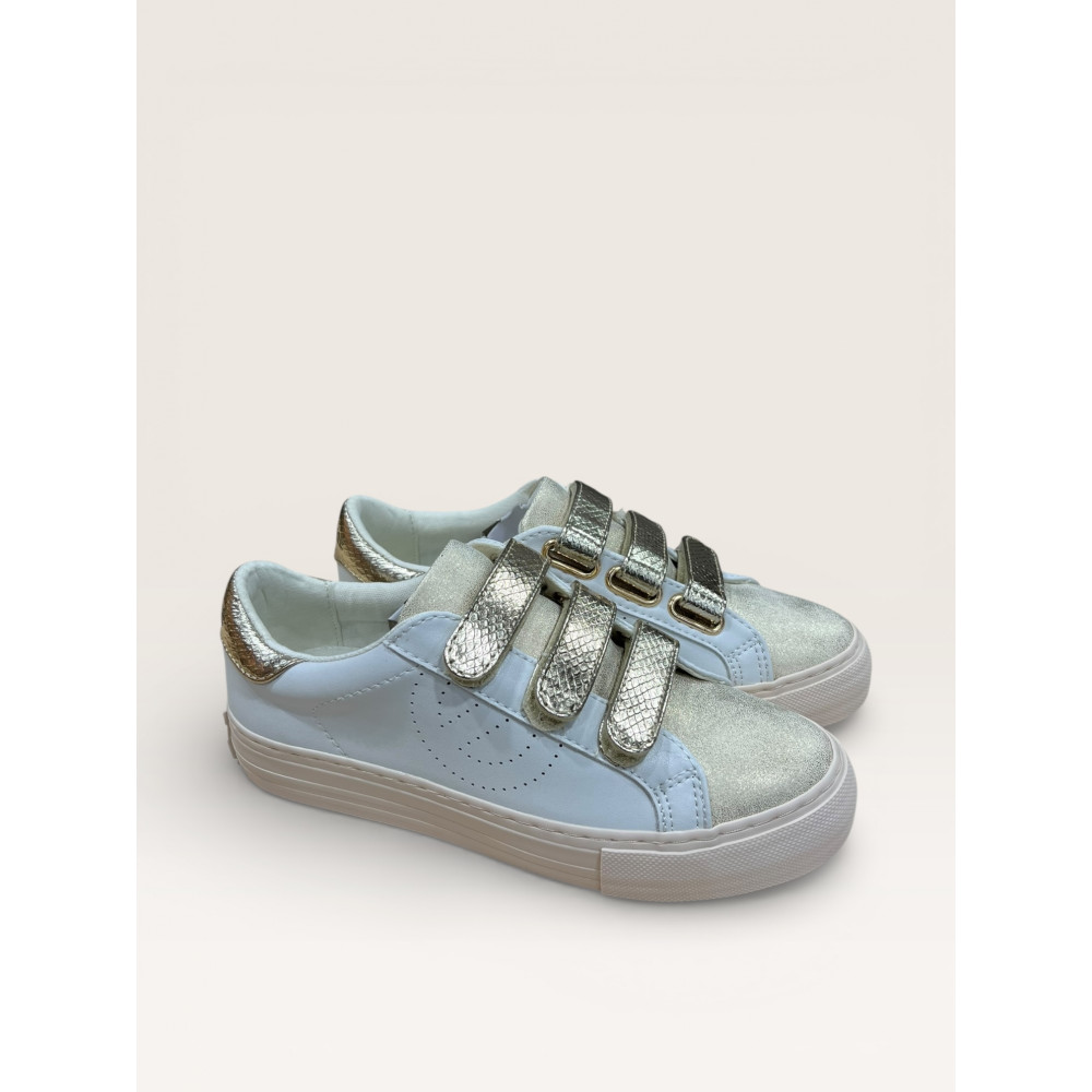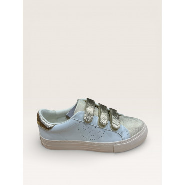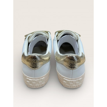 NO NAME BASKET PLATE ARCADE STRAP EN CUIR BLANC AVEC TROIS SCRATCHS DORE