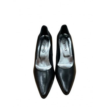 MYMA ESCARPIN 8526 A BOUT POINTU EN CUIR NOIR A TALON
