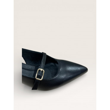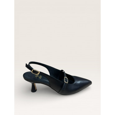 WE DO SANDALE CO4595A/06 A BOUT POINTU EN CUIR NOIR A TALON AVEC UNE BRIDE ARRIERE